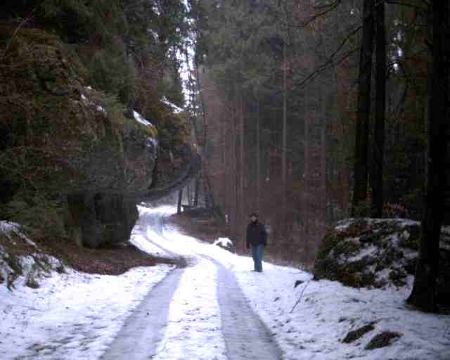 My favorite route goes from the village to the city and back. It goes one hour each through a fairytale rocky landscape with a stream, a lake, meadows and a lot of forest. This I hike sometimes on Monday morning when going to the post office for fetching the paper mail. Or at night to the pub and back. It is wonderful in the forest in the night! Mein Lieblingsweg geht vom Dorf in die Stadt und zurück. Das ist je eine Stunde Weg durch eine märchenhafte Felsen- Landschaft mit einem Bach, einem See, Weiden und viel Wald. Hier wandere ich manchmal Montags morgen, um die Post vom Postamt zu holen. Oder abends in die Kneipe und nach Hause. Es ist wunderbar im Wald in der Nacht!
