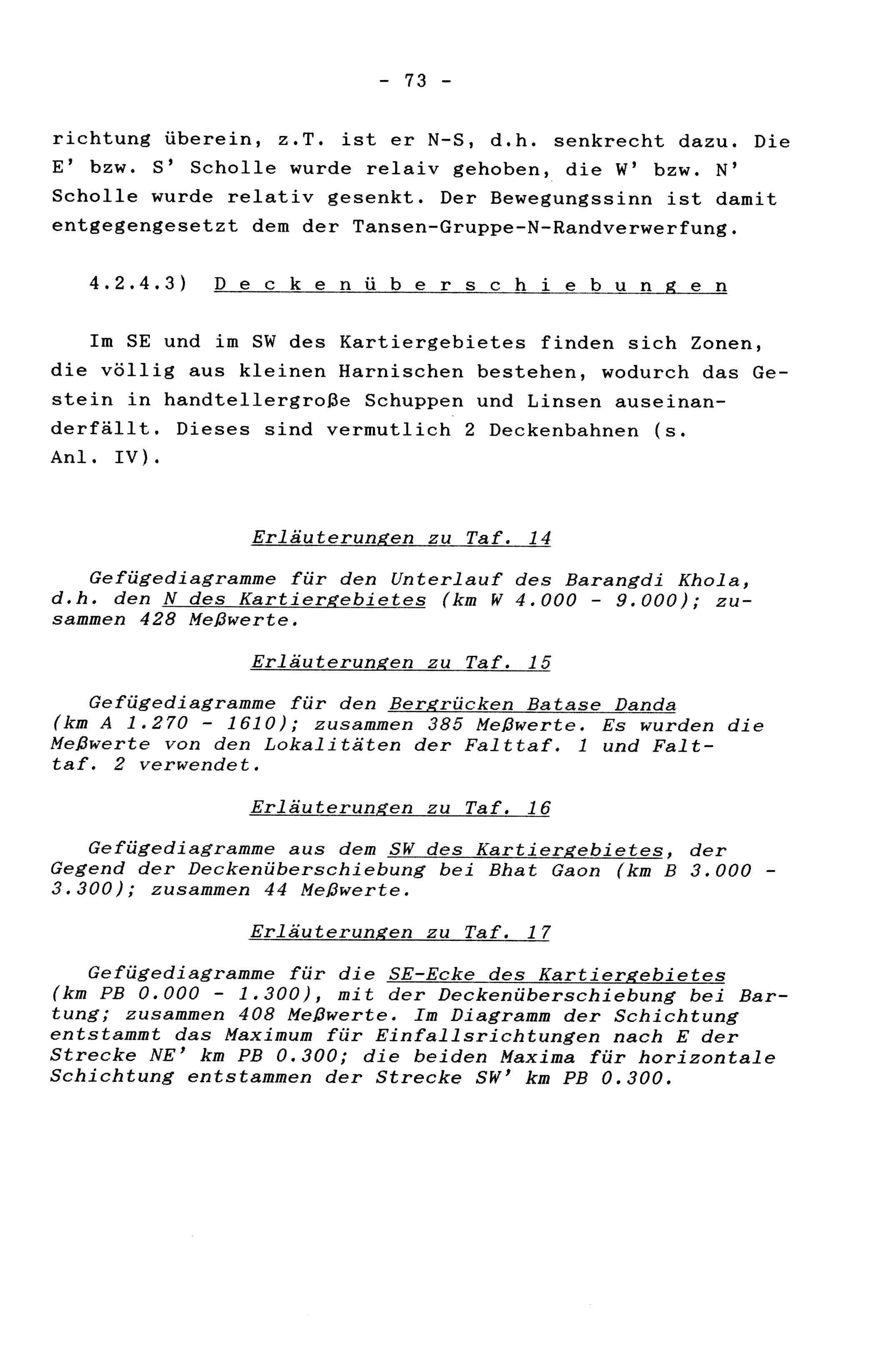 Gefügediagramme für den Unterlauf des Barangdi Khola,